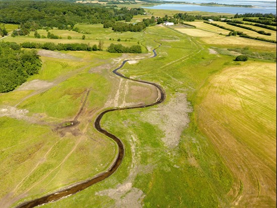 Dronebillede af Vidkær Å (Foto: Henrik Rosenskjold)